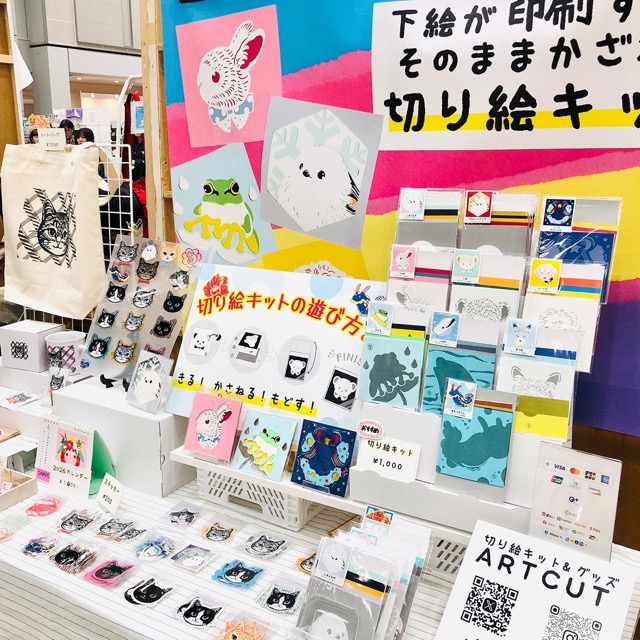 切り絵キットとハンコやステッカーなどがあります!