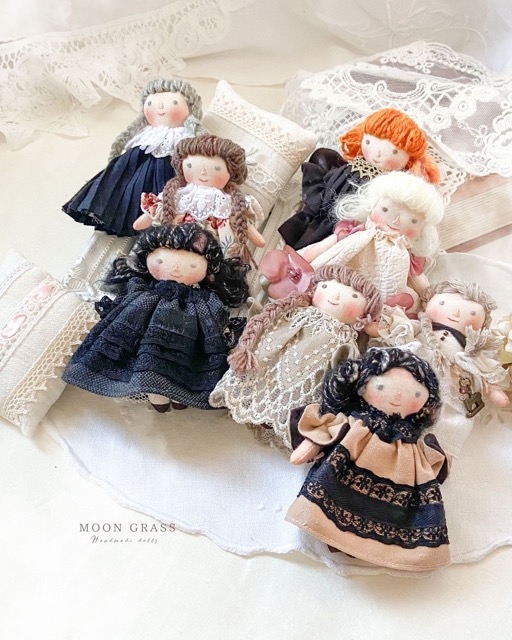 ナチュラルアンティークな雰囲気の布で作った着せ替え人形。 お部屋に飾りたくなる世界にひとつの、優しい布のお人形を制作しています。お着替え用のお洋服や、小さなお人形などもあります。