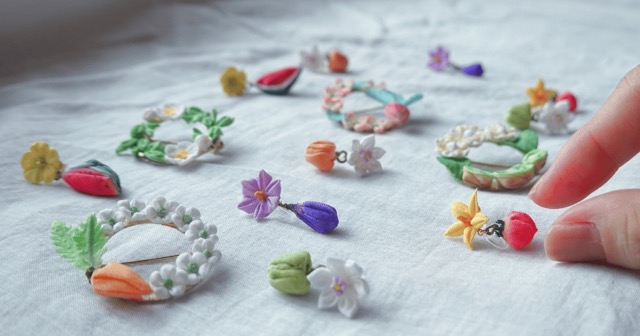 - こびとの農園は、野菜・果物など農作物の花をモチーフにしたアクセサリーを、つまみ細工の技法で制作しています。彩色には廃棄野菜を活用した素材も使用し、エシカルなものづくりにも取り組んでいます。身につけるたびに「これ、〇〇の花なんだよ」と誰かに話したくなる。そんな小さな会話が、農や食をもっとに身近に感じる入口になればと思っています。自分用だけでなく、花言葉を添えた贈りものとしてもおすすめです。