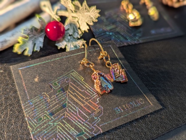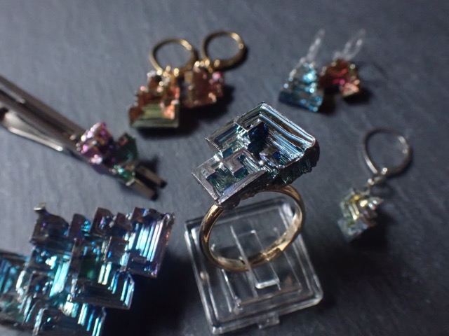 - 唯一無二の輝きを持つビスマスの結晶を、ひたすら眺めたり、お気に入りの場所に飾ってみたり、身につけてみたり。 いつも通りの日常に、ビスマスのような神秘的な彩りをプラスしてみませんか...? ブースでは、あなたを彩るピアスやネックレス、ネクタイピンをはじめとしたアクセサリーや、小さなかけらを詰め込んだキーホルダーやボールペン、その他気軽に手に取れる小さい結晶から大きい結晶もございます。