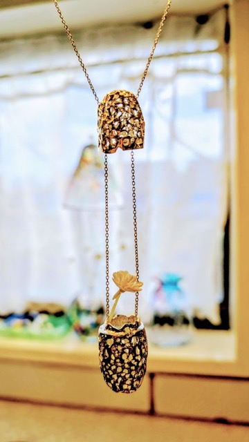 - 自宅工房にて1人で貴金属加工をしています。森で拾ったスカシダワラ(山繭)や葉脈を銀に鋳造することから始まった、自然モチーフのシルバー作品は、オブジェから多様なジュエリーへと展開をしています。天然石シルバージュエリーのハッとするカラフルさ、アンモナイトジュエリーの面白さ、いろいろ作っていきますので、是非見に来てください!