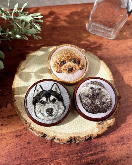 - 動物たちの「その子らしさ」を、糸ですくい取るように手刺繍しています。犬や猫、小動物まで幅広く制作。4cm前後の小さなブローチから大きな刺繍枠作品まで、毛並みの流れや瞳のきらめき、ふとした表情を描き、ご家族の想いや気持ちに寄り添う一点ものをお作りします。ブースではうちの子刺繍オーダーのご相談もお気軽にどうぞ。