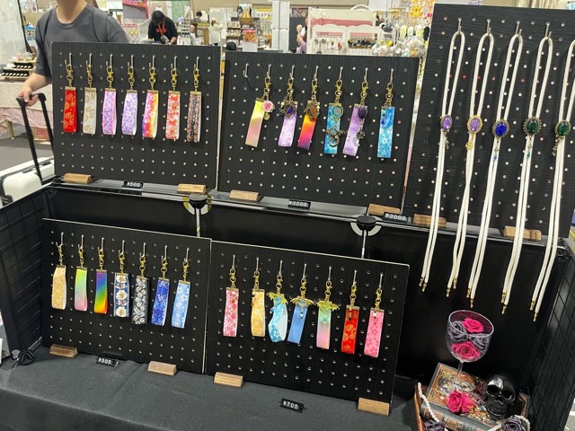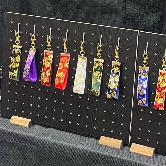 カニカンを使用して着け外すことにより自分だけのループタイやリボンキーホルダーにすることができるアクセサリーを販売します。