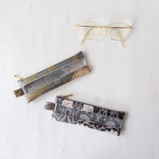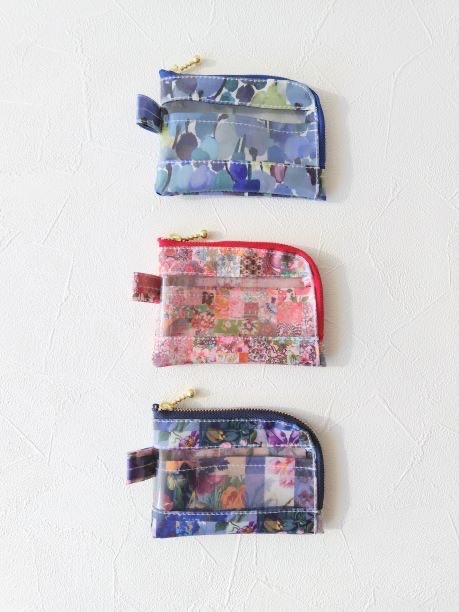 - リバティプリントやウィリアム・モリス柄を使ったクリアポーチを制作しています。形やサイズ、柄のバリエーションが豊富で、用途や好みに合わせて選べるのが魅力。ラミネート加工による実用性と、柄を楽しむデザインで、年代を問わず「使いやすくて嬉しい」とご好評をいただいています。日常に彩りを添えるアイテムです。