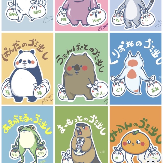 - カワグチナミが生み出すオリジナルキャラクタのゴミ袋の結び目をうさぎの耳に見立てた「ゴミうさぎ」や、80種のいきものたちのゴミ出し姿の「いろんないきものゴミ出しシリーズ」、「テキトーうらないやさん」などのシュールなグッズや漫画本や書籍などを販売します。