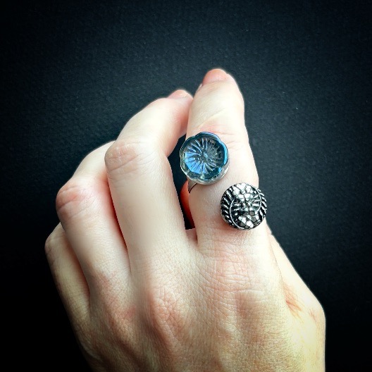 - 手仕事を愛する方へ。ファッションも手仕事も、このリングひとつで。趣味の時間をもっとあなたらしく、もっと楽しくするソーイングジュエリー「音琴(otokoto)りんぐ」。針がくっつく仕組みにより作業をアシストします。チェコのガラスビーズやボタンの美しさを兼ね備え、身に着けることで気分まで高まる、実用性と装飾性をあわせ持つ道具のジュエリーです。