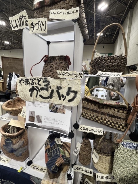 新潟県で採れた素材を中心に使ったかごバッグ。山ぶどう、くるみのかごバッグを作っています。