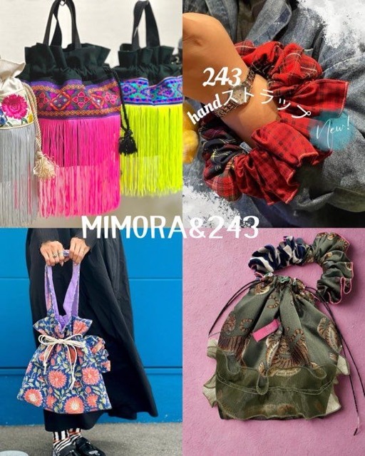 - テイストの異なる二人によるハンドメイドユニット **「似てないシスターズ」**として出展します。 カラフルでフリフリなデザインが特徴の布小物を制作する243(フシミ)と、黒を基調にインド刺繍やビビットなネオンカラーを取り入れたフリンジ巾着を看板商品とするMIMORA(ミモラ)。 それぞれの「好き」や感性を大切にしながら、 日常にときめきや楽しさを添える作品を、心を込めて制作しています