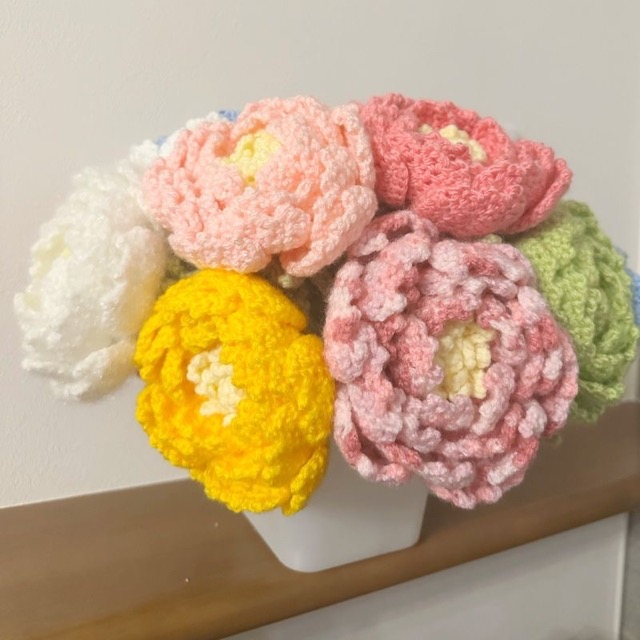 毛糸で出来た枯れないお花屋さん。お好きなお花をお好きな色や組み合わせで貴方だけの花束を作りませんか?