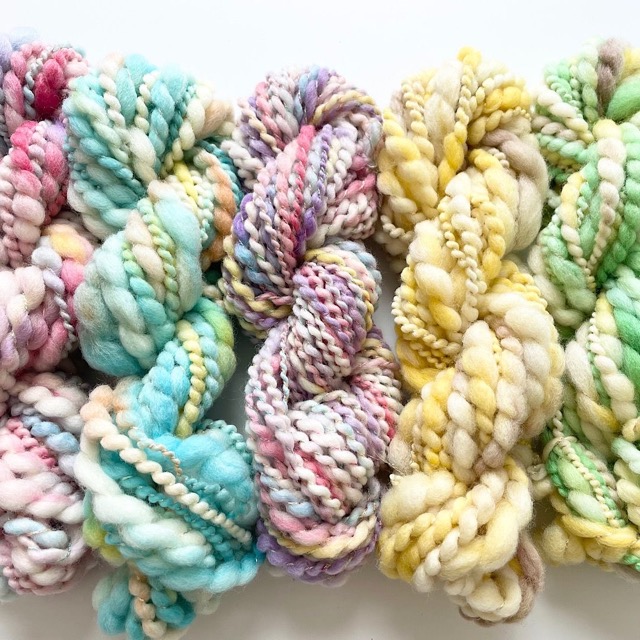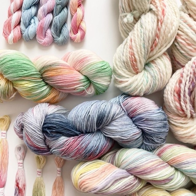 - 染めたり紡いだりして、「糸」を作っています◎ 彩り豊かな手染め糸は、レース糸、刺し子糸、刺しゅう糸、ソックヤーンを。 ふんわりかわいい手紡ぎ糸は、編みやすいシンプルなタイプから、飾るだけでも楽しいアートヤーンまで、さまざまな糸をご用意いたします* 好みの糸を探しに、ぜひお越しください♪