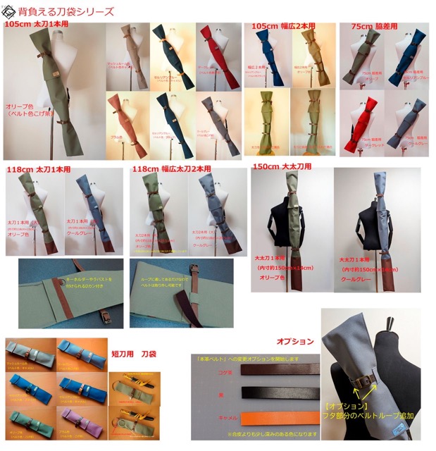 8号帆布で製作した「背負える刀袋シリーズ」他小物類