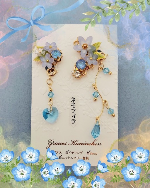- 【可愛いをそばに♪】をコンセプトに、プラバンやレジンを使って、小さくて可愛い季節の花のアクセサリーを作っています。