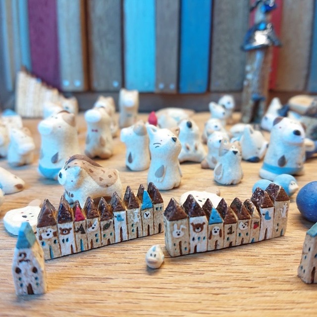 - ちいさな陶器の動物や家並みをたくさん並べます。ぜひ見にいらしてくださいね!
