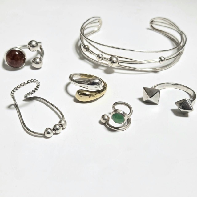 - シルバーや真鍮、天然石を用いて彫金や鋳造にて1点1点制作しています。 シンプルなものから癖のあるデザインまで揃え、男女問わず着用できます。