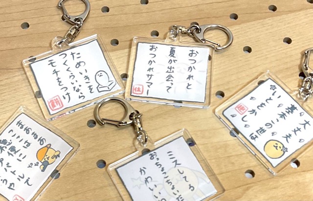 あたたかくて、おもしろい、心に刺さるポエムやにこやかでかわいいキャラクターのグッズがあります。