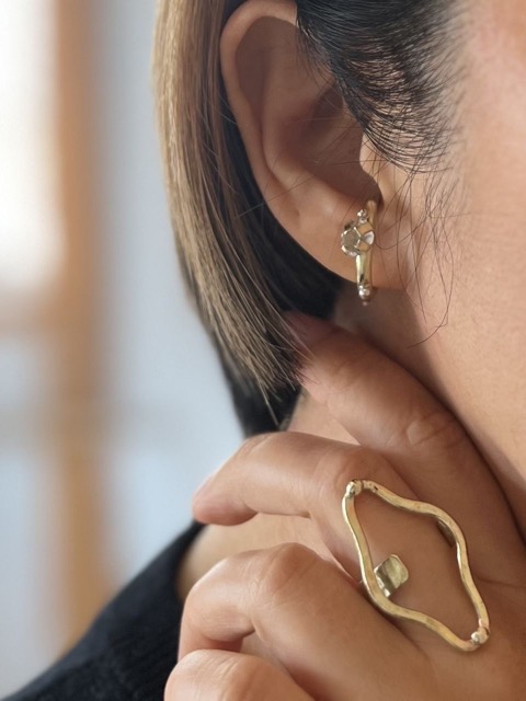 - 日常も特別な日もさりげなくつけられるジュエリー。真鍮をベースに刻印や天然石を組み合わせていちからデザインし制作しています。その時々でイメージを膨らませて。てづくりならではの一点もの、存在感ある輪郭を形にしています。