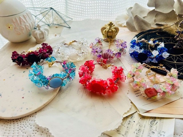 - ガラスボタンや、ビンテージボタン、インポートボタンなどを使いガラス鈴蘭を添えた可愛いキラキラのアクセサリーを作っています。 童話のようなアクセサリーをお求めの方は是非お立ち寄りくださいませ。