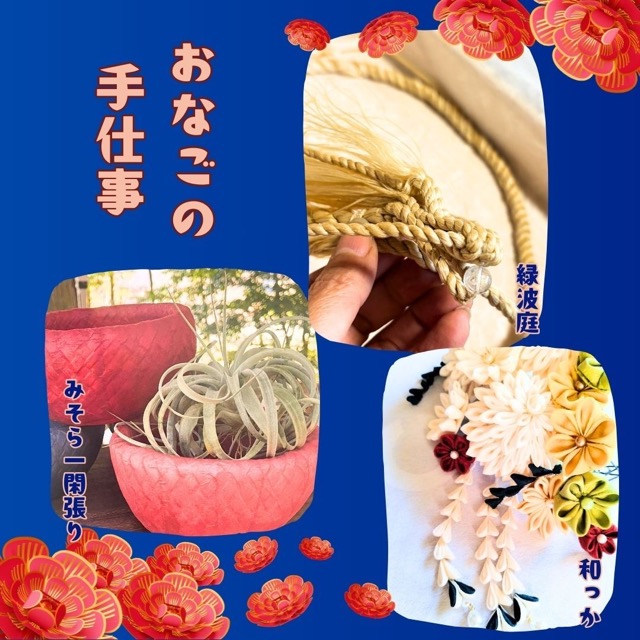 - 和の心を大切に 日々に寄り添うかたちを、ひとつひとつ 緑波庭(精麻飾り)、みそら一閑張り(一閑張り)、和っか(つまみ細工)のそれぞれの技が響き合う“おなごの手仕事”です