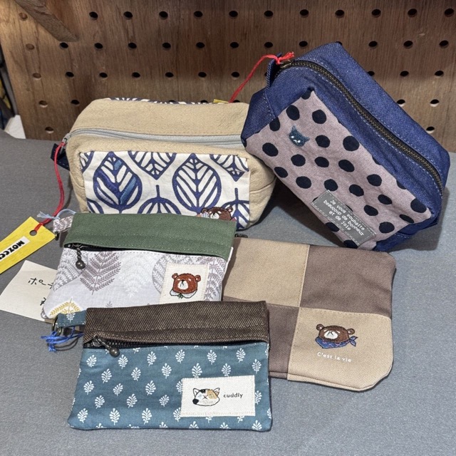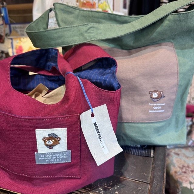 ミシンは使用せず、刺繍をふくみ全て手縫いで製作しています。刺繍のデザインはオリジナルです。代表キャラクターは 白目のクマです。1点もので色違い等はありますが、複製はしません。