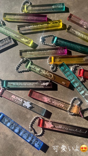 - シンプルで主張しすぎない、日常の生活を上げてくれるアクリル雑貨を意識して作って参ります。今回はアクリル染色と言う技法を使ってオリジナルティー溢れるキーホルダーを作って頂きます。 大人も子供も自分色に染まって行く鍵棒にワクワクとドキドキがとまりません!是非一度体験してみて下さいませ。
