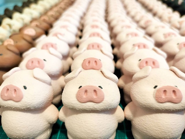 ブタさんの4コマまんがから広がった世界観を、立体作品や、雑貨として制作しています。