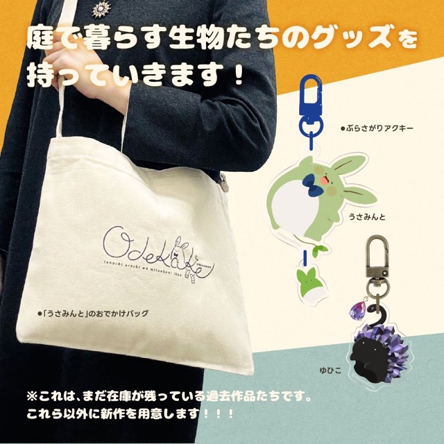 - 人間を辞めた先にある「繭ノ庭(まゆのにわ)」という世界。ここで暮らすほっこりかわいい生き物たちを描いています。今回はその中でもかわいいうさたん「うさみんと」、研究者「める」のグッズを中心に持っていきます。世界観が好みでしたらぜひお越しくださ~い!