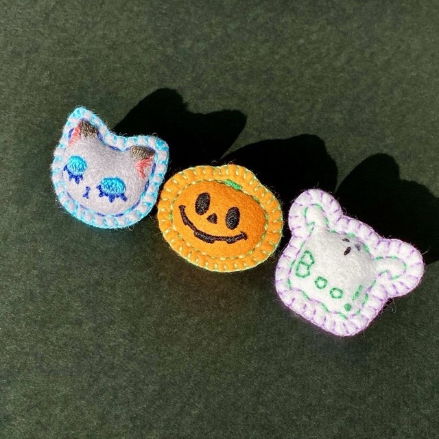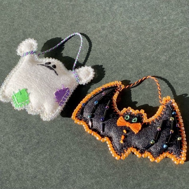- 「一年中ハロウィンのお店」をテーマにハロウィンの代表的なモチーフで刺繍や編み物雑貨を制作しています。お店の名前に「オカシ」とありますが、お菓子は販売していません。その代わりに可愛くてオカシな雑貨を制作してお待ちしております!
