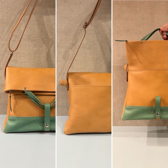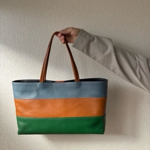 - 革の色使いや質感にこだわり、さらに裏地の組み合わせも全て異なるため、同じデザインの鞄でもそれぞれ個性を出して製作しています。カラフルな革と、裏地の選び方にはこだわりを持ち、色のバランスや質感の違いが一つの作品として調和するよう心がけ、持つ人の毎日が少し楽しくなるよう願っています。