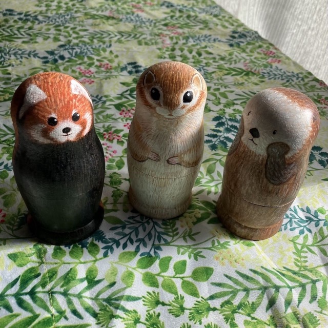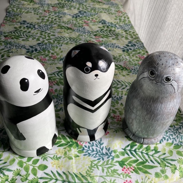 - 絵本から飛び出したような可愛い動物マトリョーシカです。