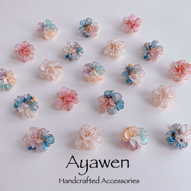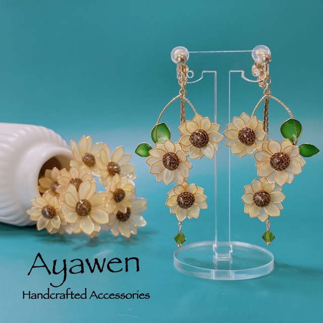 - 『一本のワイヤーから生まれた世界』 ワイヤーで輪郭を作り、液体樹脂に膜を形成させた花弁などをモチーフとしたディップアートアクセサリーです。 見た目は薄いガラスのよう繊細で透明感があり、また非常に軽く着け心地が良いものになっています。