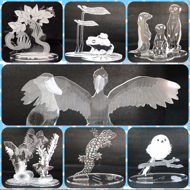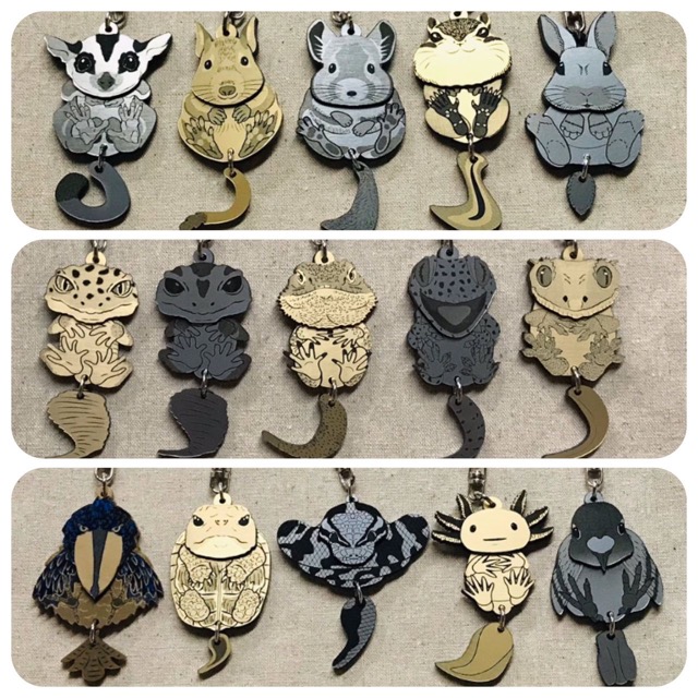 - 哺乳類、爬虫類、両生類、鳥類などの生き物をモチーフとしたオリジナル創作グッズ(小物、アクセサリーから、立体造型物など)を木材、アクリル、レザー、レジン、木の実など様々な素材を使用して製作しています