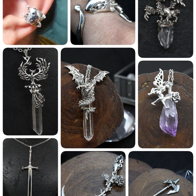 - 中世ヨーロッパで実際使用されていた武器のモチーフ、ドラゴンやフェニックスなど幻獣のモチーフシルバーアクセサリーです。 爪や牙など細部まで表現した作品 天然石水晶を使用した世界に一つの一点ものも ドラゴンベビーや猫やコウモリのイヤーカフなど女性にも人気です。2025 9月28日中日新聞静岡県版朝刊でインタビューが自分の作品の掲載されました。