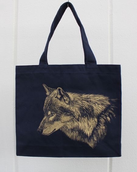 狼をモチーフにしたグラスリッツェン技法で製作したグラス、手描きバッグ、文具、雑貨などを販売します。