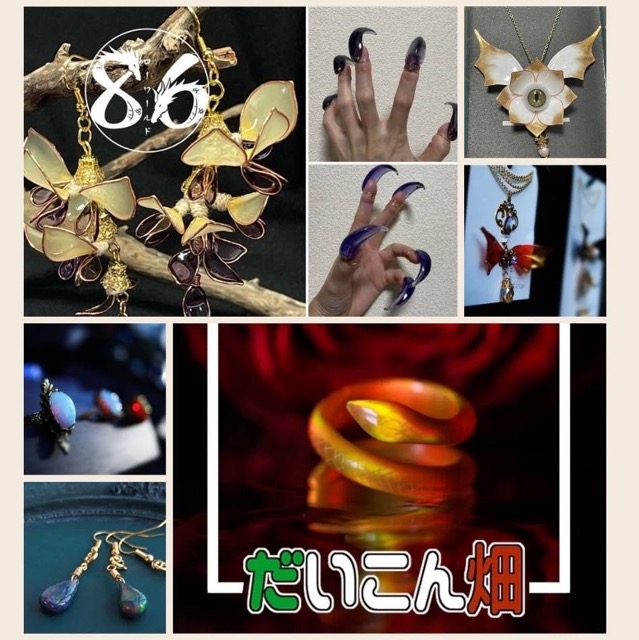 - ディップアートとレジンでアクセサリーを作ってる春和と、ハイブリッドオパールで指輪を作ってる清白が合同で出展します。