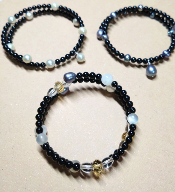 - 天然石をアーティスティックワイヤーで装飾したネックレスや耳飾り、形状記憶ワイヤー使用のブレスレットなどを作っています。 いろんな石があるのでぜひお手にとって見てみてください。