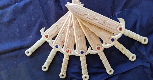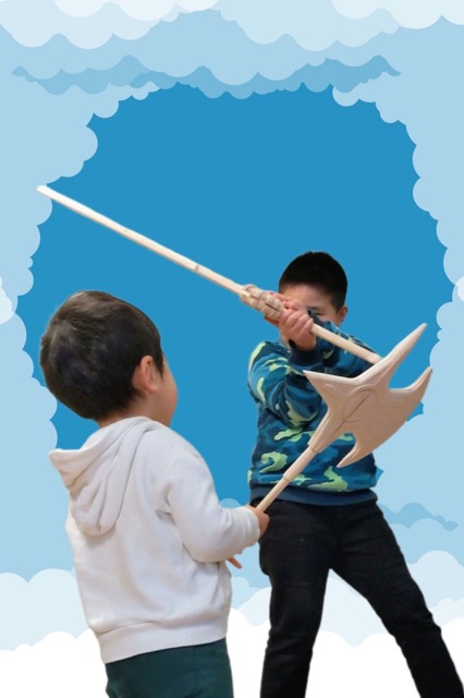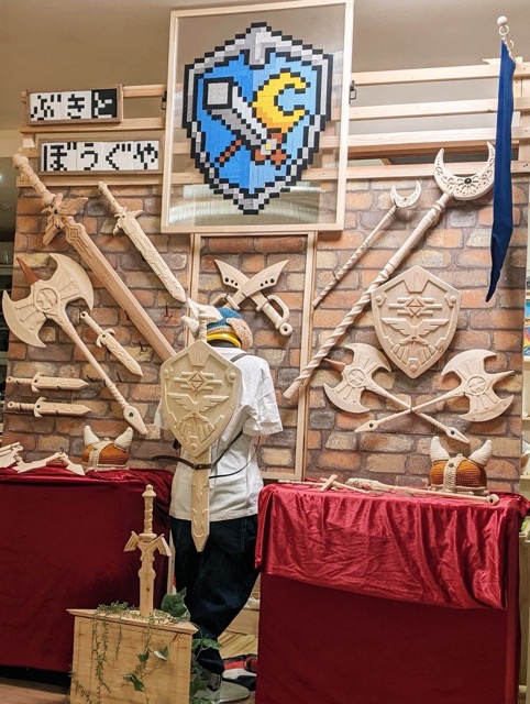 - 武器と防具屋さんです。木の武器と、編み物の防具を取り揃えました。剣や盾を装備して、冒険者気分を味わってみませんか。なりきり遊びや、お部屋のインテリアにも最適です。看板を目印に、ぜひ遊びに来てください。