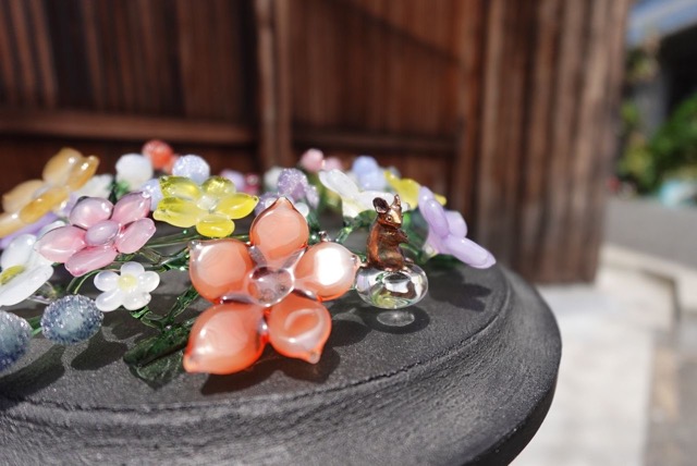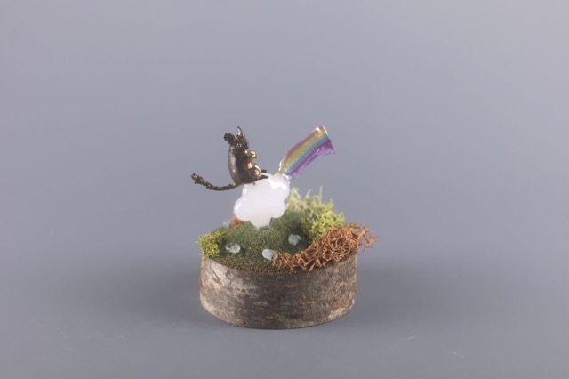 - glass工房ココロイロにて、スタッフをしております。工房ではペンダントやガラス細工を教えており、私は体験をメインにやっています。今回はデグーという生き物をシルバーで制作しガラス細工とブリザーブドの植物を合わせ「小さな世界」という空想の世界を作っています。可愛いデグーをみんなに伝えたいと制作しています。寝ている子、遊んでいる子、どんな性格なんだろうと考えながらみていただけると嬉しいです。