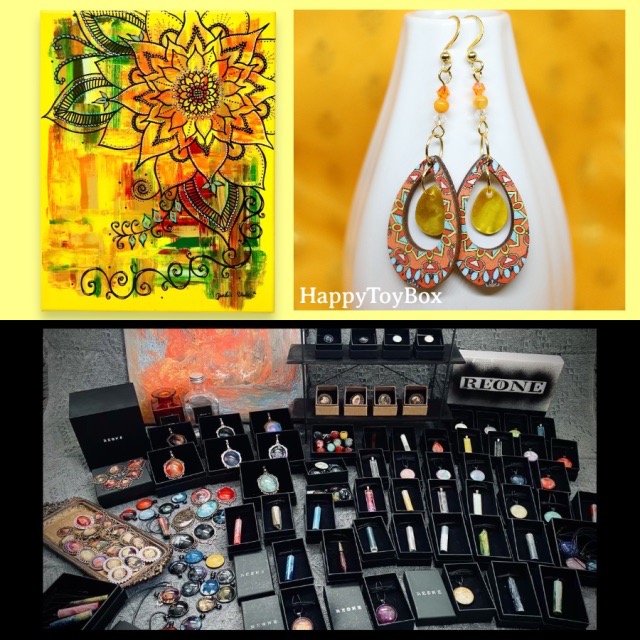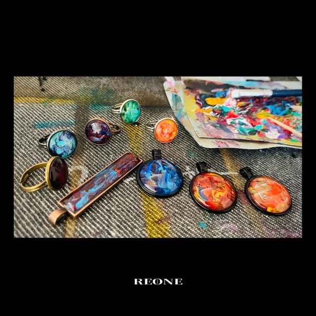 - 「アレルギーのある人にも自由な選択を」という思いでイヤリングやピアスには医療用メスにも使用される素材、サージカルステンレスを使用し全て一点ものにこだわって作る。【Happy Toy Box】と「身に付ける抽象画。日常にプラスONEを」抽象画家Ryo reductionによる、世界に一つだけのアクセサリー。ネックレス、指輪などを取り扱っており、持ち主の日常を鮮やかに彩る。【REONE】の合同出店!