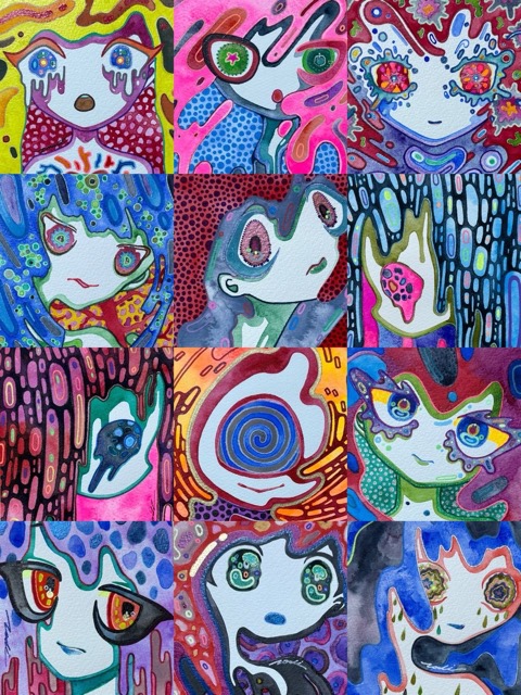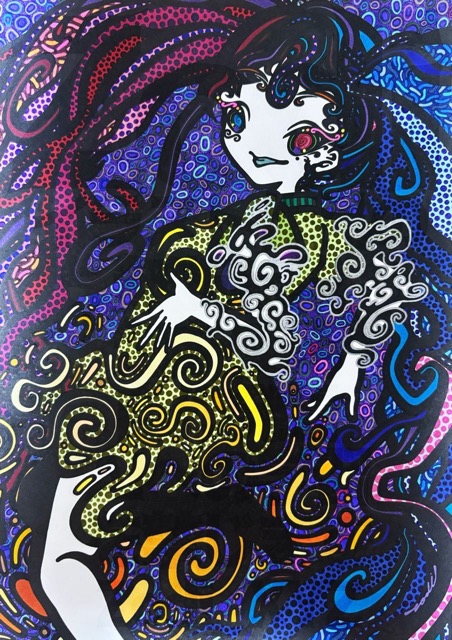 - 【躁鬱狂気のゆめのなか】をテーマにコピックや水彩などを使ってカラフルでドロドロとした世界観を好み描く。原画やイラストを使ったステッカーやアクリルキーホルダー他グッズ販売をします。