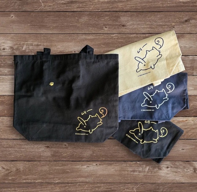 - おしりがチャームポイントな猫やカエルの布雑貨を作っています。キャラは「ムリーねこ」「おけつねこ」「だんまりカエル」の3つ。丈夫で大量量の大型キャンバストートバッグやTシャツ、ミニタオルやポーチ、ステッカーなど、日常使いしやすいものを揃えてます!