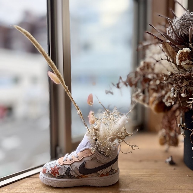 - "人生楽しんでなんぼ!毎日を足元から楽しくなってほしい!"という想いから立ち上げた「NoShoes」 毎日出かけたくなるようなオンリーワンのスニーカーを提案・制作しております! 強度とクオリティを両立したカスタムスニーカーの世界を皆さんに知ってもらえると嬉しいです。 これまでになかった飾るためのインテリアスニーカー「ドライフラワー×スニーカー」も!