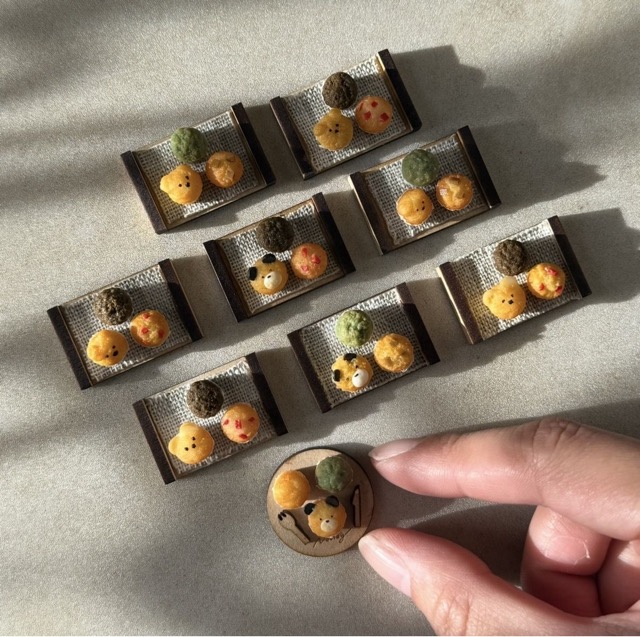- 樹脂粘土や木材などあたたかみのある素材を使ってミニチュアフードや雑貨を制作しています。ほっとするような小さな世界と、オリジナルキャラクターたちのゆるかわいさで日常にちょっとした癒しとときめきをお届けします