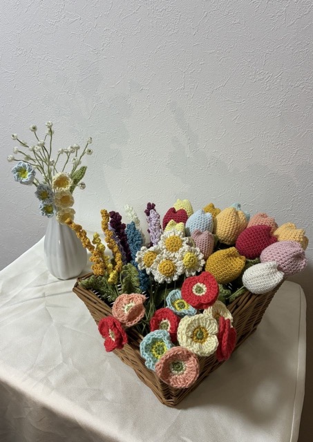 毛糸とかぎ針で枯れないお花を一輪一輪編んでいます