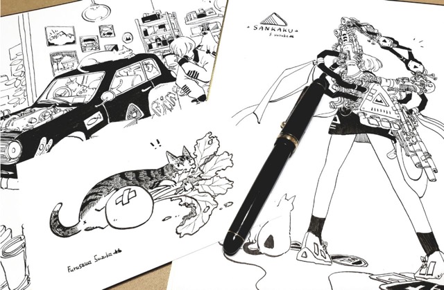 - 主に万年筆でごちゃごちゃした絵を描いています。猫・後ろ姿の女の子・機械のパーツ・車の出現率が高いです。 インク猫・ケイカイ猫・ジュウデン猫・ホッキョクウサギ(?)などのキャラクターもいます。かわいい7割、ヘンテコ3割の気持ちで描いています。 イラスト原画・ポストカード・アクリルキーホルダー・アクセサリーなど、イラストとグッズを販売予定です。よろしくお願いします。
