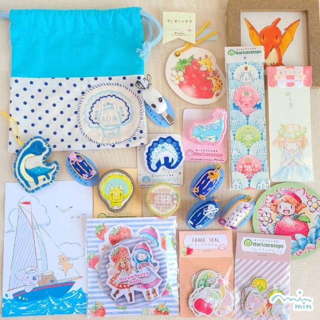 - にぎやかカラフル「huwako」とほっこりやさしい「min」のお絵描き大好きコンビ「いちごソーダ」です*かわいい動物やきょうりゅう、女の子たち満載のイラストグッズやポストカードなど置いてます☆手作りのブローチやチャーム、ミニ原画など一点モノもたくさん!お気に入りを探しに来てね☆ふんわりイラスト雑貨製作予定!ぜひぜひ遊びに来てくださいね!