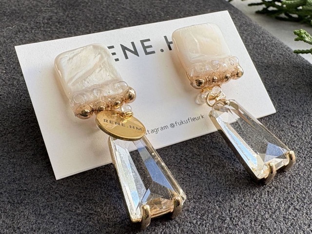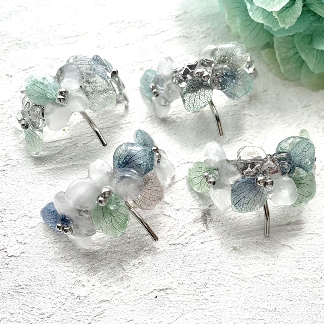 - 本物のお花、天然石、シェルなどを使用したアクセサリーを作っています。シンプルな中にも自分らしさを表現できるような、甘すぎないデザインのアクセサリーを中心に展開。一部お子さまも楽しめるラインナップもあります。