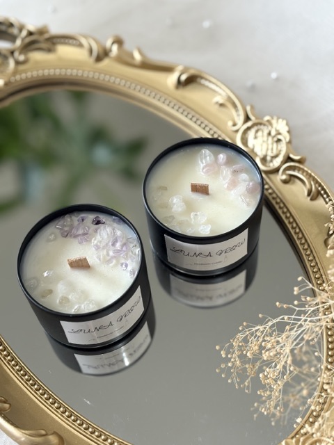 - 日常のさまざまな時間に寄り添うキャンドルを制作するLUNA GROWです。色や質感のニュアンスを大切にし、月モチーフやニュアンス模様、天然石を取り入れた一点物のキャンドルを制作しています。一日の終わりや作業に集中したい時間、インテリアとしてもそっと寄り添う作品と、ジェスモナイトの器を制作しています。