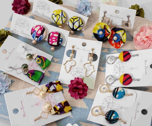 - “毎日の暮らしに小さなアフリカを”をコンセプトに、アフリカをイメージした作品を一つ一つ心を込めて作っています。アクセサリー(ネックレス、耳飾り、ブレスレット、シュシュ等)や生活小物(チャーム、コースター、ミニクッション、マグネット等)、鮮やかな色や模様のアフリカ布やオリジナルのアフリカフレームを使い、レジンやくるみボタン等もアレンジしながら、ここにしかない世界で一つだけの作品を制作販売しています。