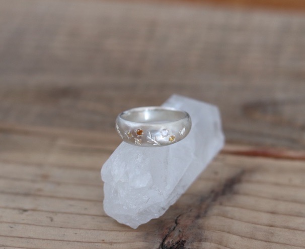 シルバー、真鍮、天然石を用いた彫金アクセサリー
