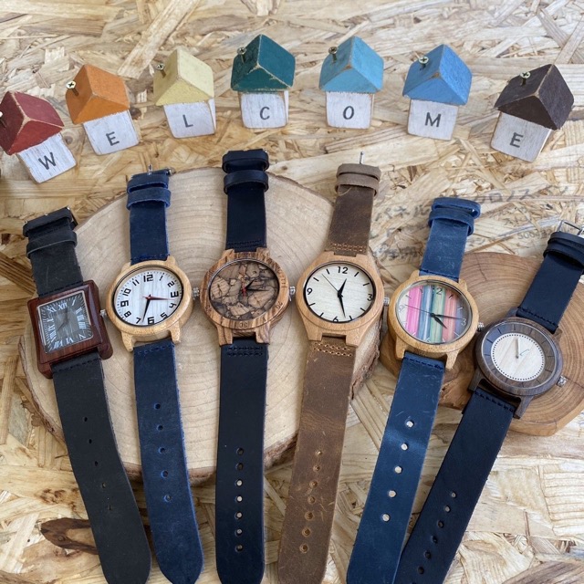 - 木と革を使って作った温かみのある、自然香る優しい木の腕時計です。木と革を使っているため、使えば使うほど馴染んでいくので、育てる腕時計とも言われています。とても軽いのが特徴です!愛着のわくオンリーワンのリストウォッチです。電池交換も可能で長くお使いいただけ、長く愛していただけます!トイウォッチ風の可愛らしいデザインや、フェイスが大きめのアクセサリー感覚でつけられるデザインなど種類も様々です。